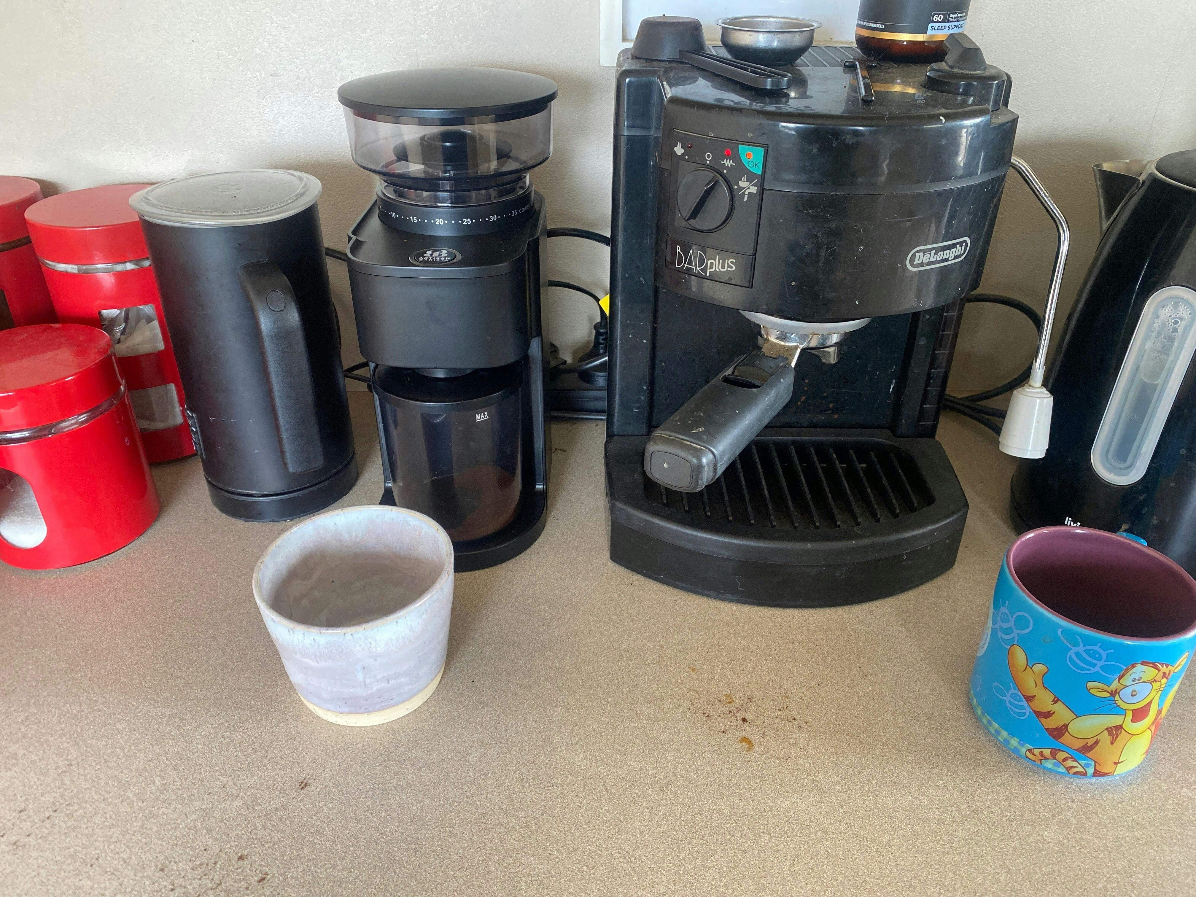 Grind straight into your basket with the included 58 mm and 54 mm portafilter cradles, or use the ground-coffee holder with lid when you’re prepping for pour-overs or storing a dose. At just H 265 mm × W 110 mm × D 180 mm and 1.5 kg, it fits comfortably on busy benches and under most cupboards.